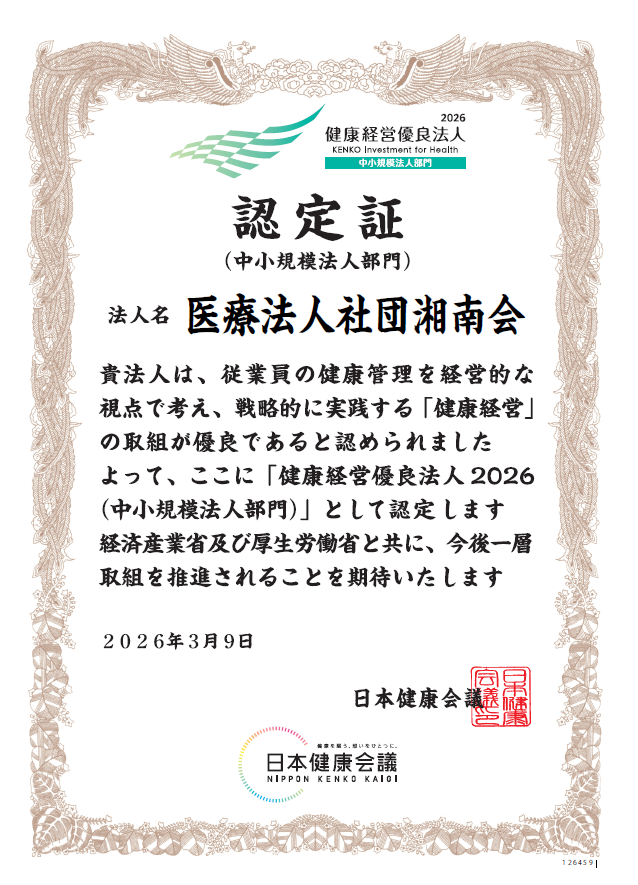 このたび当院は、2026年3月9日付で、経済産業省と日本健康会議が共同で選定する「健康経営優良法人2026(中小規模法人部門)」に認定されました。昨年に引き続き3回目の認定となります。