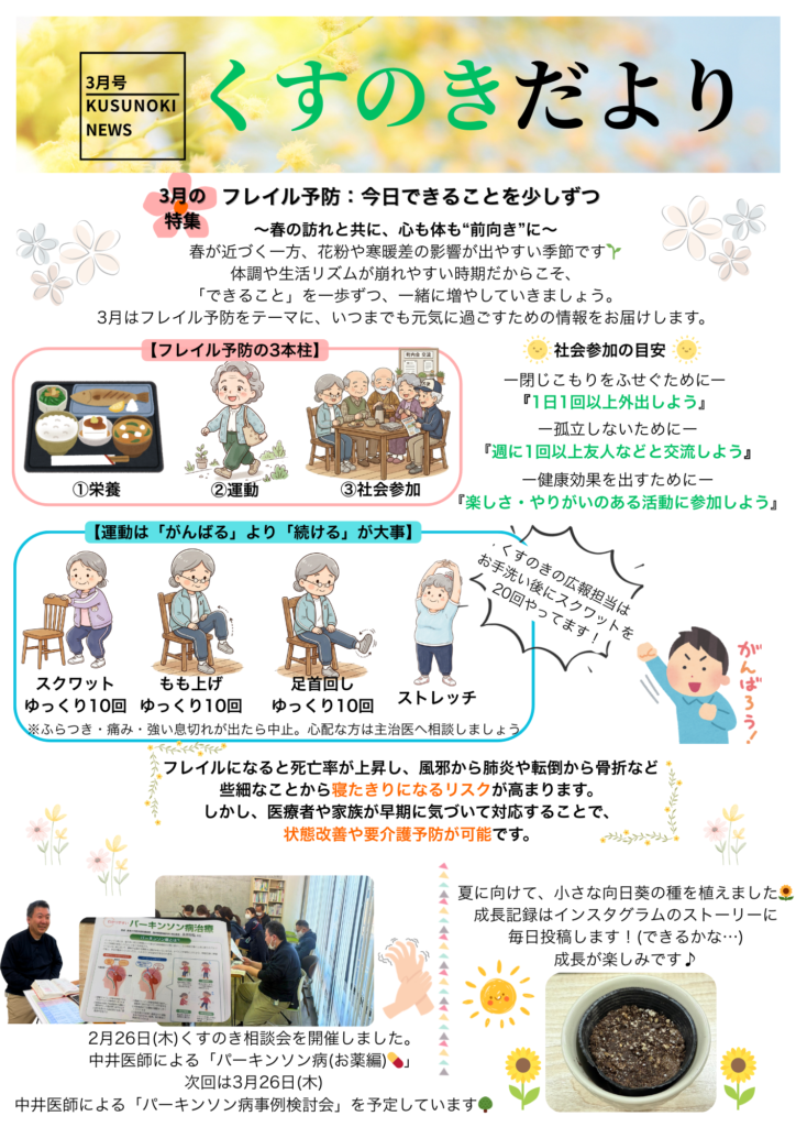 くすのきだより3月号|フレイル予防~今日からできることを少しずつ~(くすのき在宅診療所)